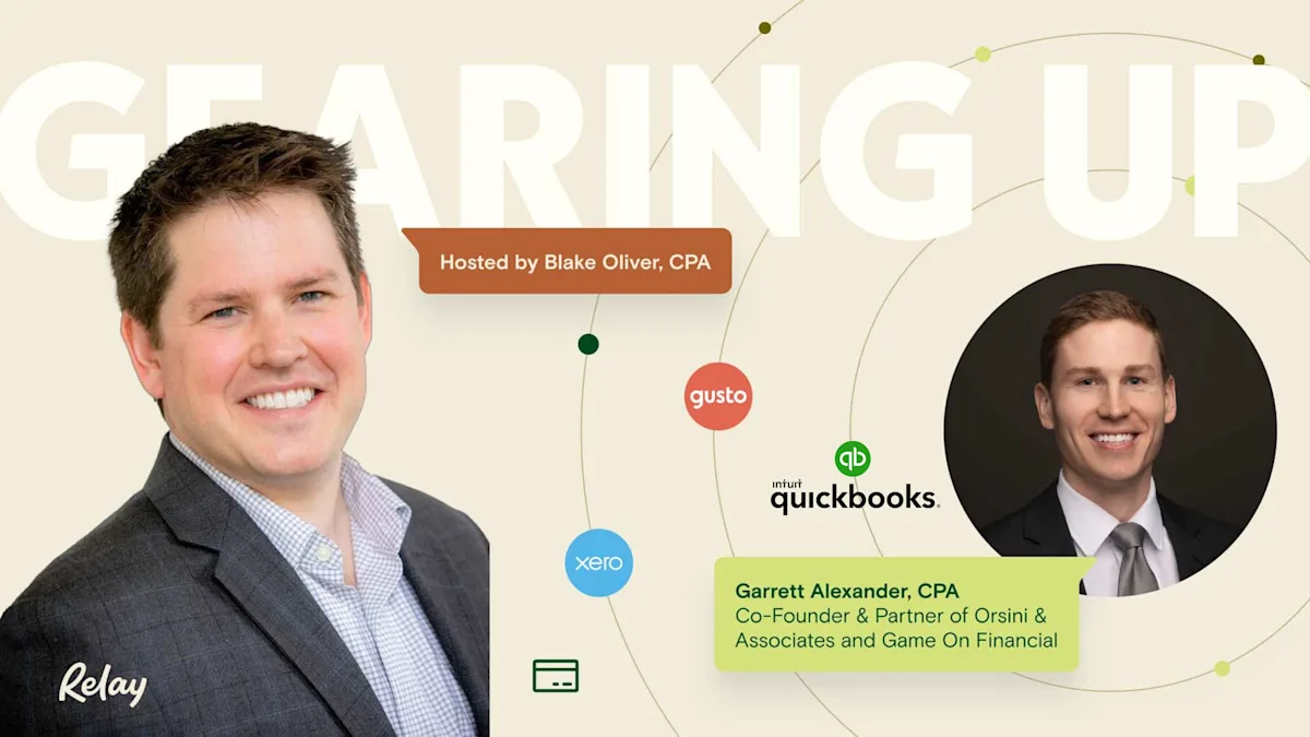 Blake: You're talking to them business owner to business owner. Hello, Blake Oliver here, and this is Gearing up, a series by Relay. Relay is business banking, designed for accountants and their clients, just like me, they're obsessed with making firms more effective and efficient. So in each episode I talked to real accountants and bookkeepers about one challenge they faced in their firm and how to solve it. Today we have Garrett Alexander of Orsini & Associates on the show. Thank you for joining me, Garrett.